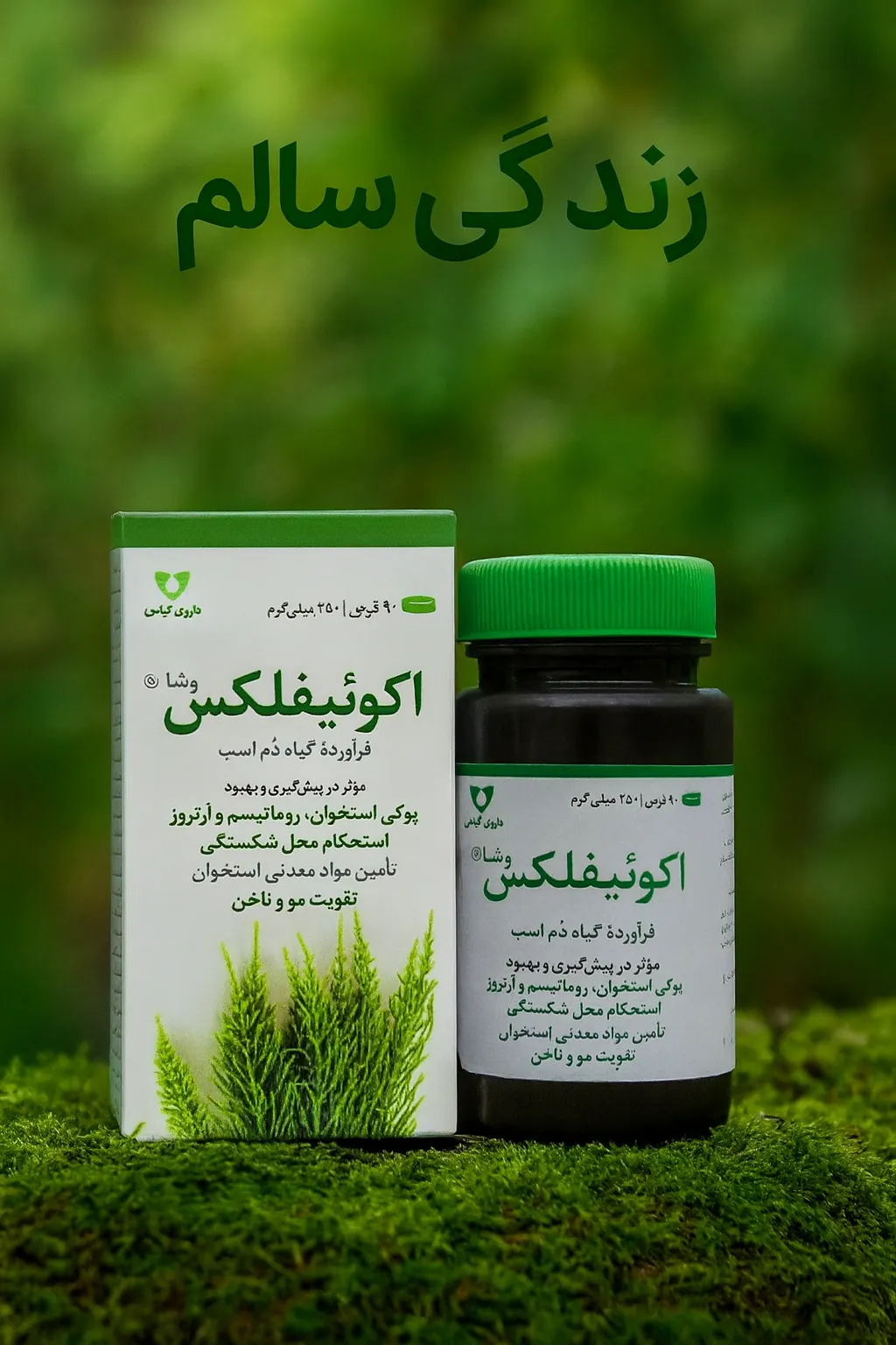 در نهایت، اگر به دنبال یک مکمل گیاهی مطمئن و مؤثر برای سلامت استخوانها، مفاصل و حتی مو و ناخن هستید، اکوئیفلکس وشا دارو انتخابی هوشمندانه است که از دل طبیعت برای سلامتی شما ساخته شده.
